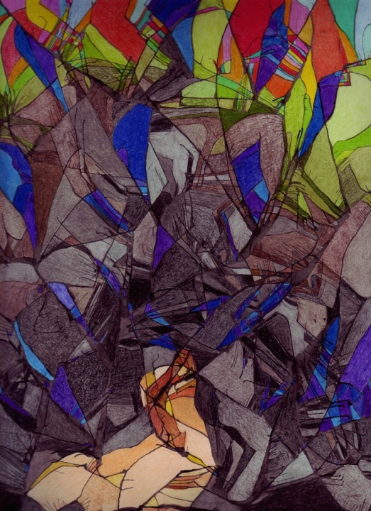 Besokalltam... (tusfújás színes ceruzák)